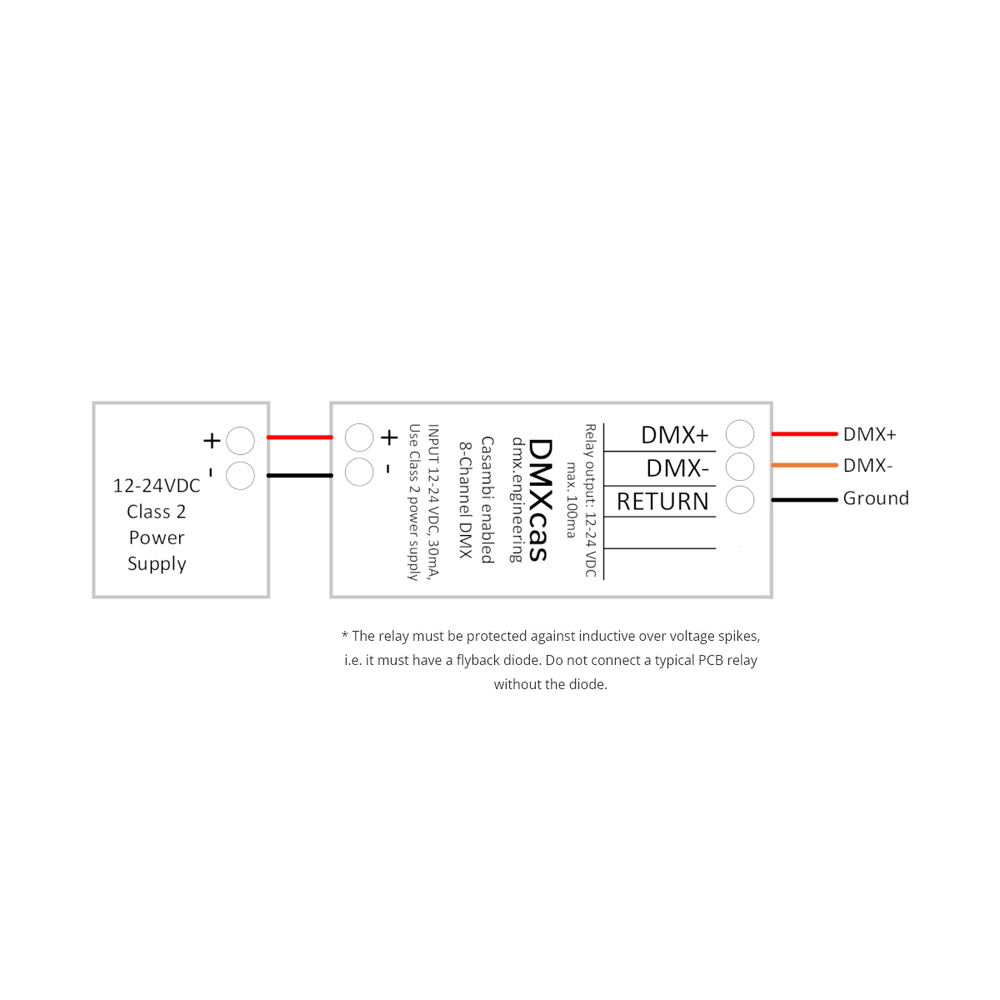 - DMX-512 slave (3-wire, non-isolated)