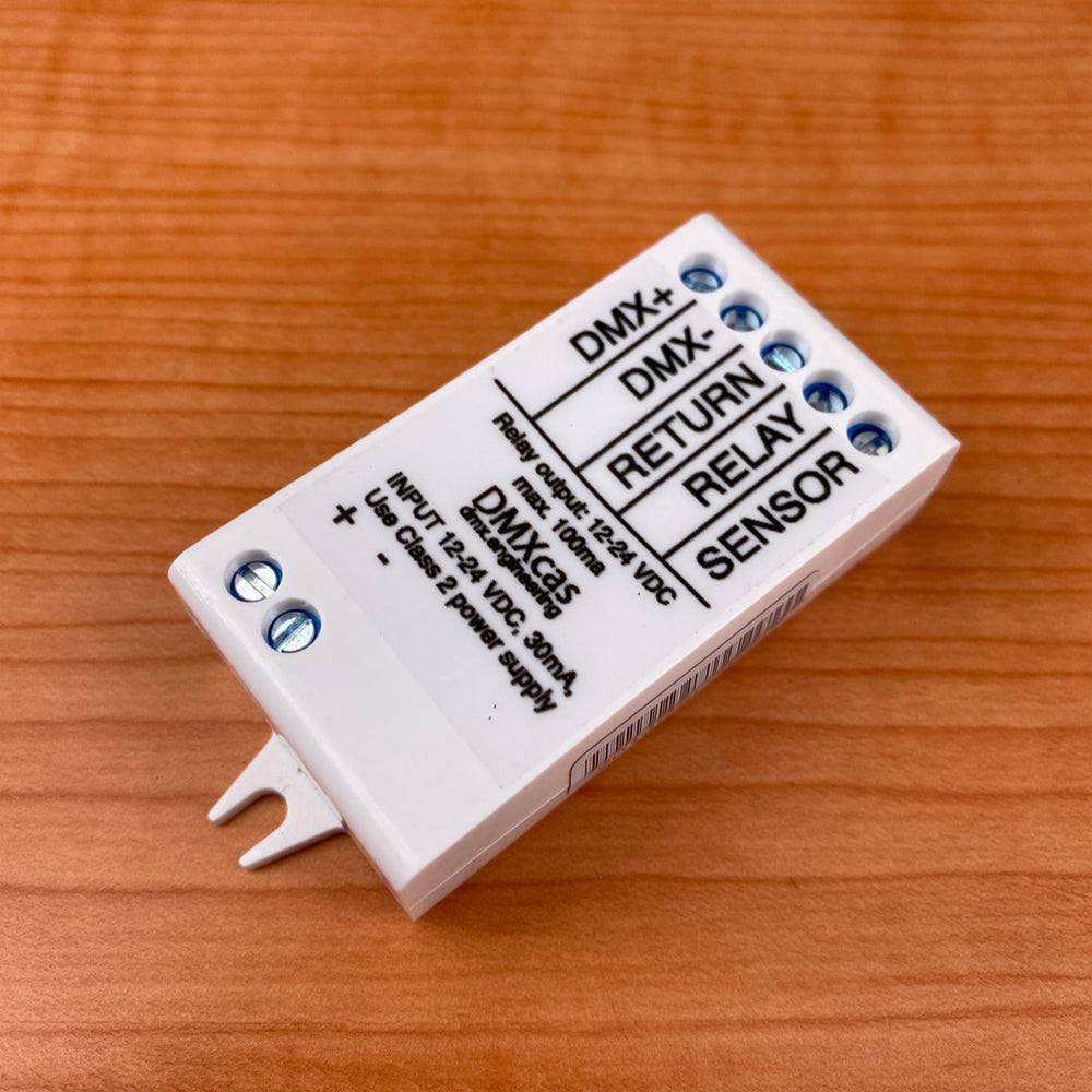Simply connect the DMXcas to a 12-24V DC power supply and your DMX-512 network, and add it to your Casambi network. Once it is connected, you can use the Casambi smartphone app to configure the mapping of DMX channels to Casambi fixtures.
