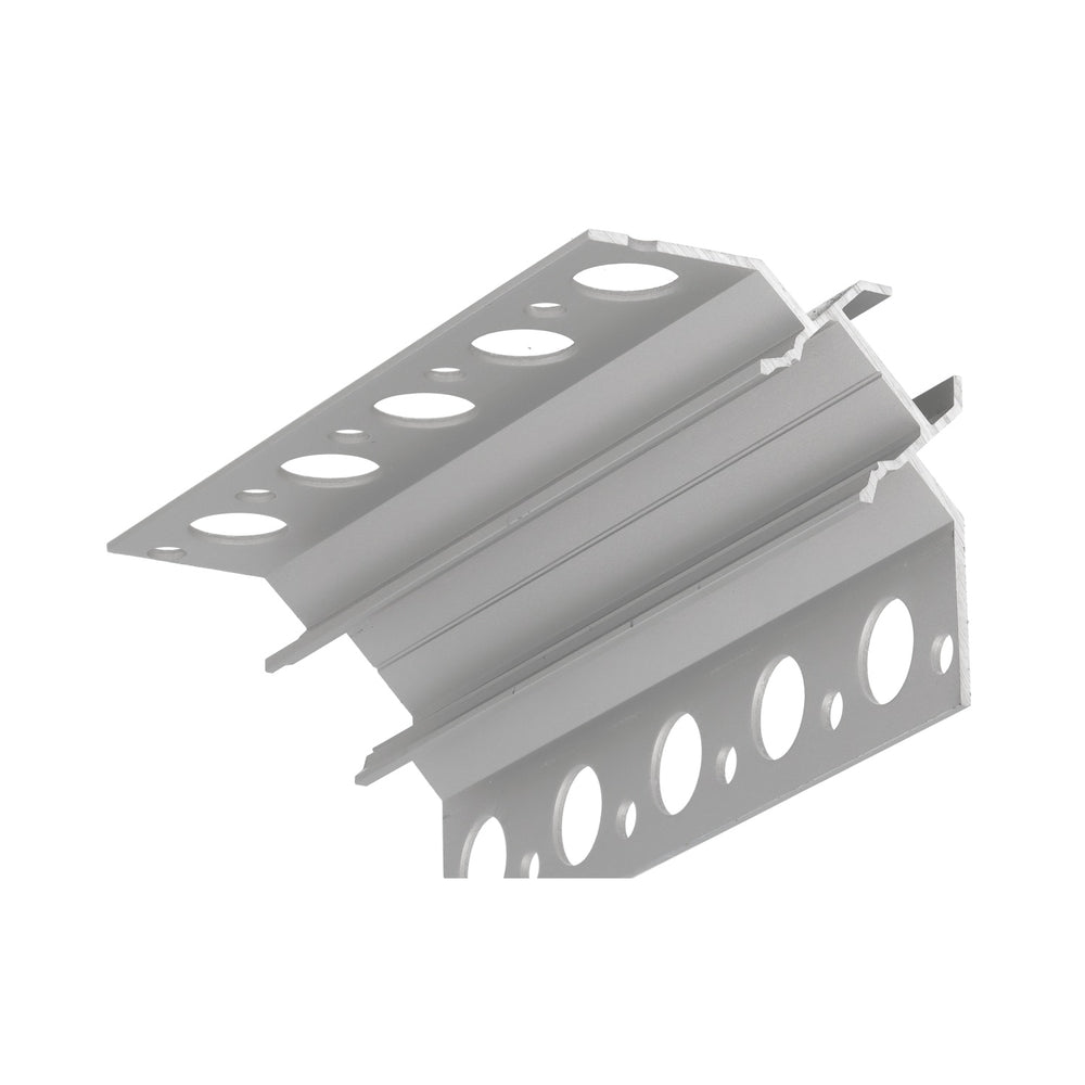The Uni-Tile12 range consists of three versions: 180 degree for flat surfaces, 90 degree for inside corner lighting, and 270 degree for outside corner lighting. Specifically, this 180 degree profile is intended for LED accent lighting on flat tiled surfaces. You can mount it between two tiles or use it as a tile ending trim, thanks to the mud-in trim on one side.