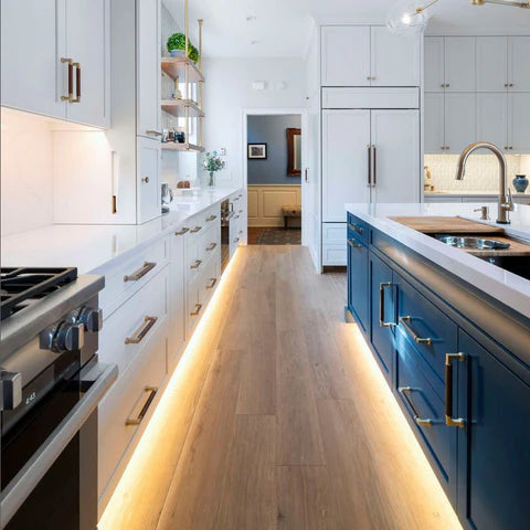 A kitchen without lighting under the cabinets is like a light without lumens! LEDs under your cabinets not only look great but also provide practical task lighting. Learn more about the benefits here! We also have an in-depth installation guide for you!