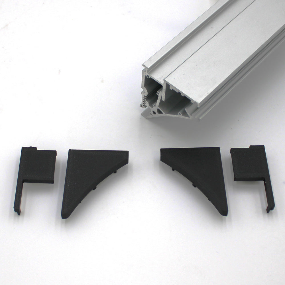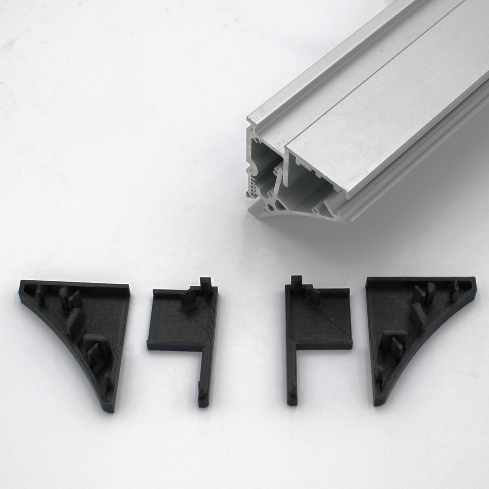 These two-part caps close the ends of the Pula P10 edge-lit shelf profile. The end caps are simple press-on for assembly. They are tough and will not corrode. 3D printed in our factory in the USA.