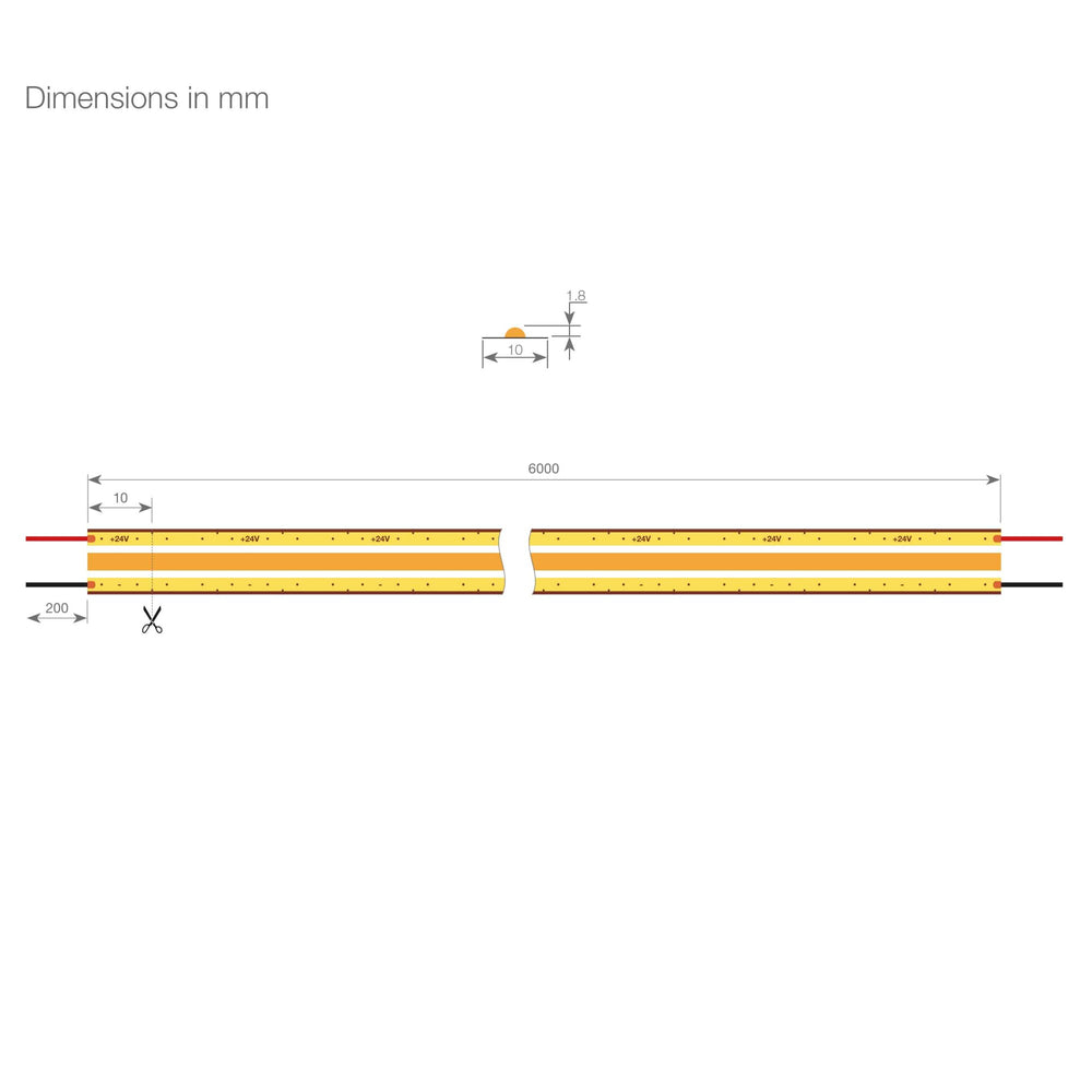 This strip is cuttable every 10mm (0.47"), allowing for precise customization without compromising performance. Even if it's cut in the wrong place, the small unlit section is unnoticeable once placed inside a profile with a cover.