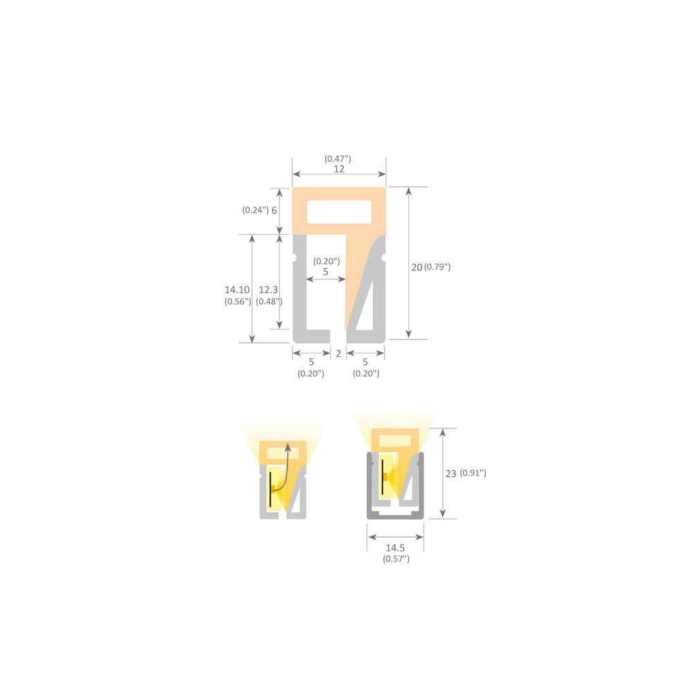 The option of straight or flexible mounting profiles as well as individual mounting clips allows you to creatively form just about any neon-style outline with energy-saving LED lighting. This neon-replacement can be used with basic white LED strip or single color strip to create brightly colored neon-style lighting, or it can be combined with RGB strip light and our controllers to create vibrant color-changing neon signage and lettering.