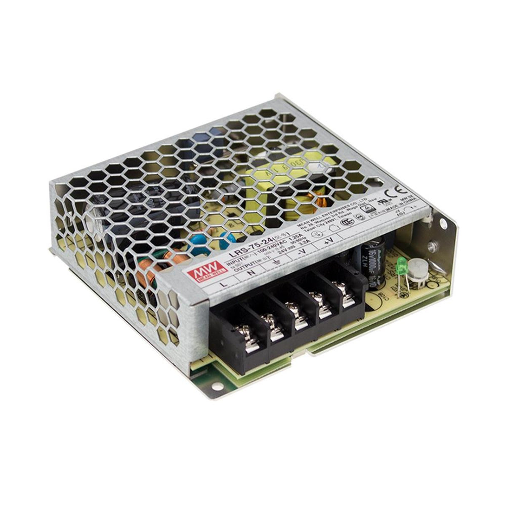 The LRS Series from Meanwell is a line of single output, switch mode power supplies. It is a compact, reliable, and cost-effective power supply with a high efficiency rating, which makes it suitable for a wide range of applications. This series of enclosed power supplies has a wide input voltage range, making it suitable for use in different regions around the world.