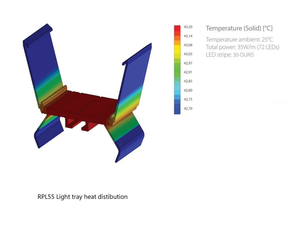 The profile can accommodate optional 25mm reflector elements which increase the lighting efficiency of the luminaire by up to 20%. Reflectors are not included with the light tray.
