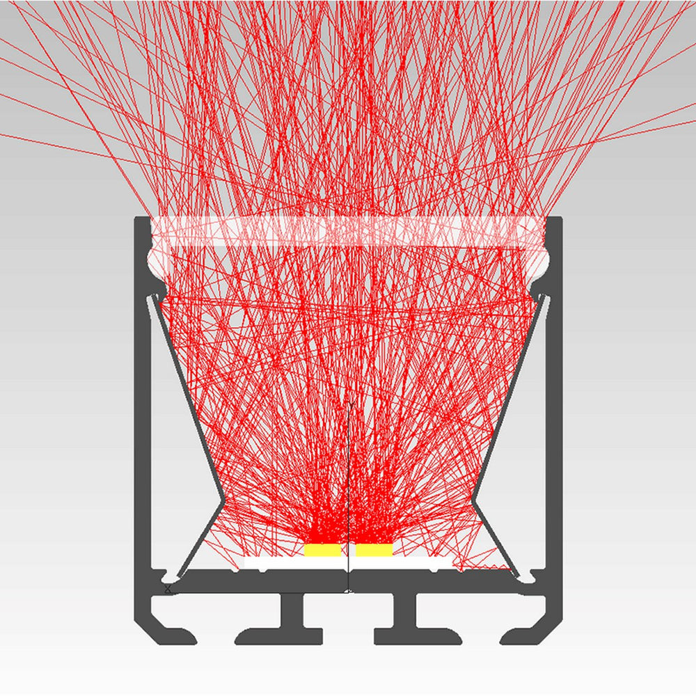 This is an optional light reflector which can be inserted into the LED channel to increase the light output by up to 20% compared to fixtures without reflectors. This means that the overall efficiency of the complete fixture is significantly improved, which saves you money by reducing the number of fixtures required to achieve the required lighting levels and saves on running costs in energy use. These reflectors are manufactured from high quality highly polished Vega95 aluminum which means that they have a reflectance factor of over 95%.