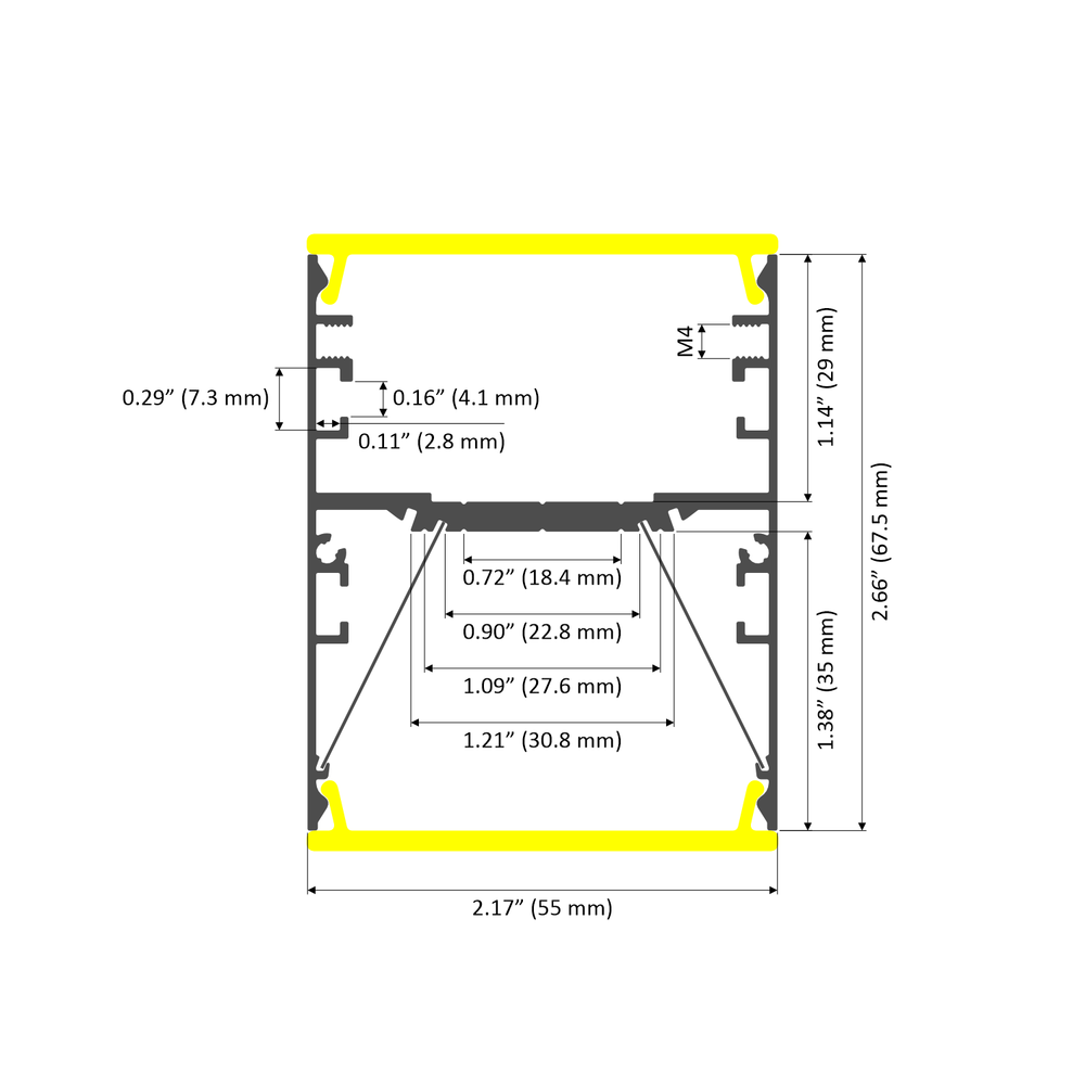 The LED extrusion can also be equipped with reflectors made of highly polished aluminum with a high light reflectance (> 95%) to increase the light output by up to 20%. In addition, the reflectors can be set in two positions to get a narrow or a wide light distribution depending on your needs.