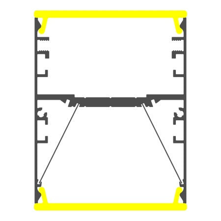 The DPL55-FL channel is a linear suspension lighting LED profile for direct and indirect lighting. This double-sided linear suspension lighting profile gives you the ability to produce a suspended direct/indirect suspended linear fixture.