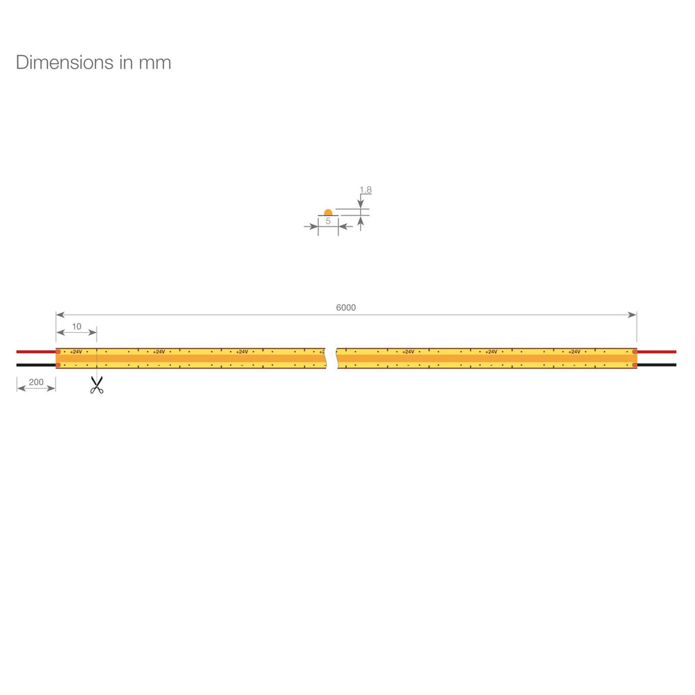 This strip is cuttable every 10mm (0.39"), allowing for precise customization without compromising performance. Even if it's cut in the wrong place, the small unlit section is unnoticeable once placed inside a profile with a cover.
