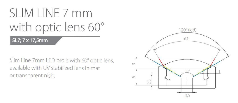 30 or 60 Degree Optic lens for the SL7, SL15, and ALU-45 series profiles.