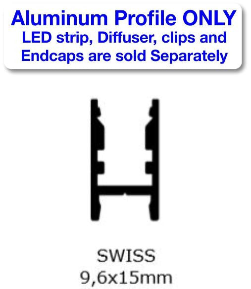 This is a small dimension LED profile which is designed for standard 6mm/8mm LED strips. The Alu-Swiss small surface mount LED strip channel is available with two high quality snap-in UV resistant diffusers: smooth and frosted "LED dot-free".
