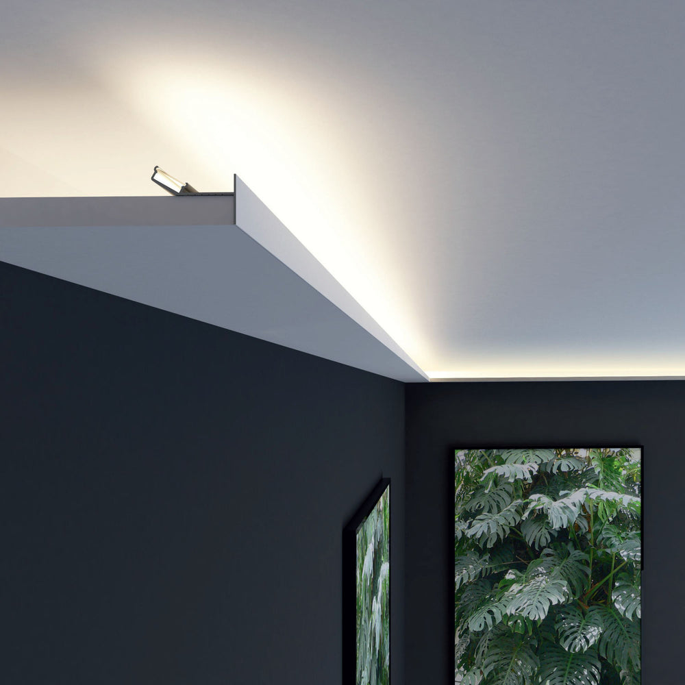 Furthermore, if you're looking for a way to conceal LED strip lights on the ceiling, our plaster-in LED profiles are the perfect solution. They're perfect for LED cove lighting, false ceiling lights, lighting in a coffered ceiling, or any ceiling perimeter lighting - their minimalist design is convenient for various LED tray ceiling light fixtures.