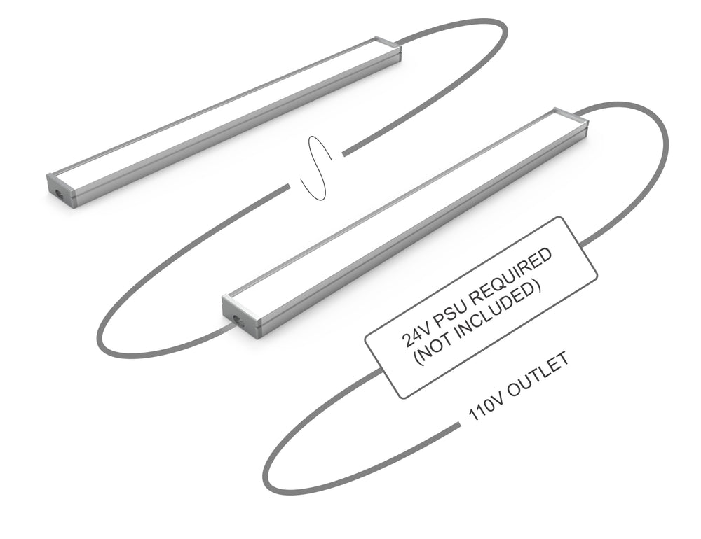 This fixture runs on 24V DC, so a 24V DC power supply is required (not included). You can use any standard 24V LED driver or LED controller. We have listed some kits of common configurations in the accessories section.